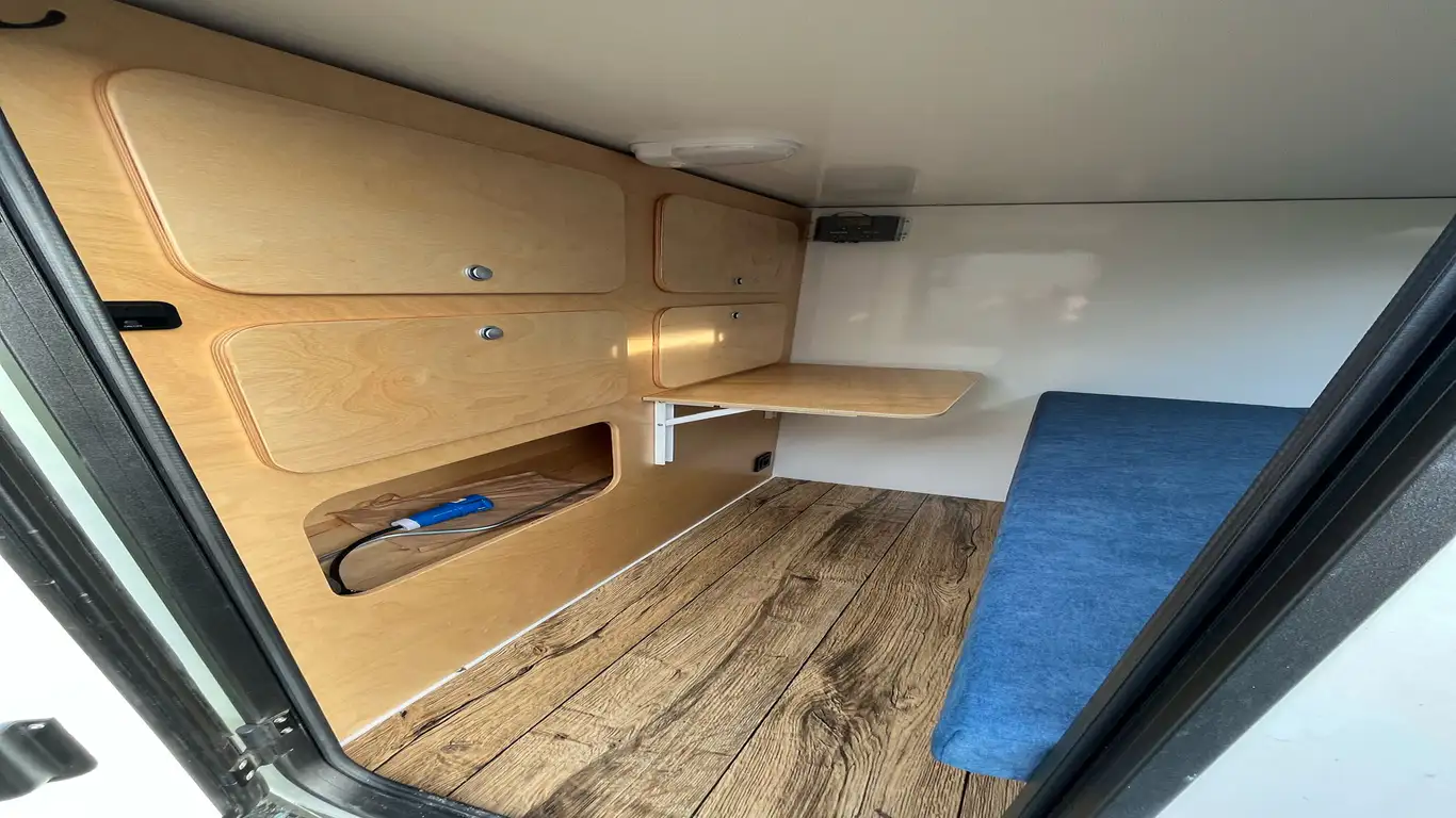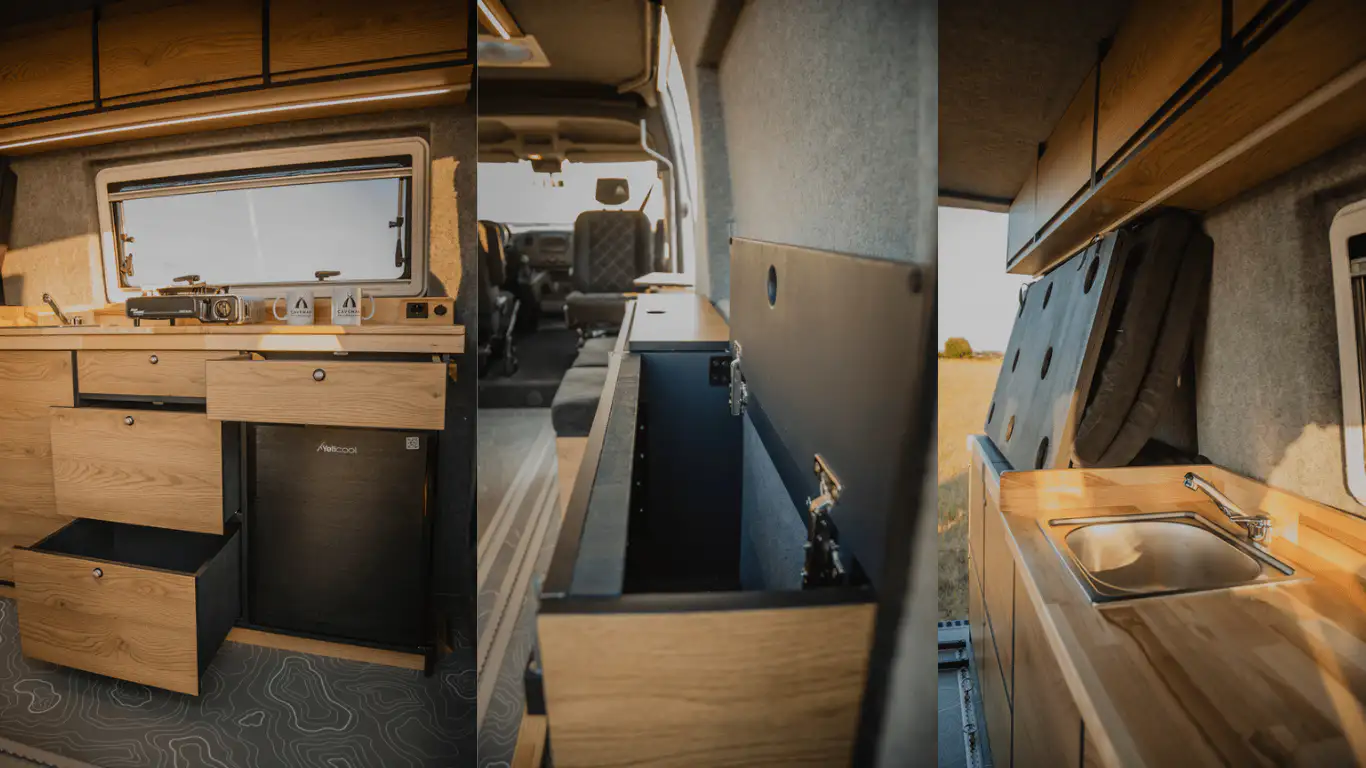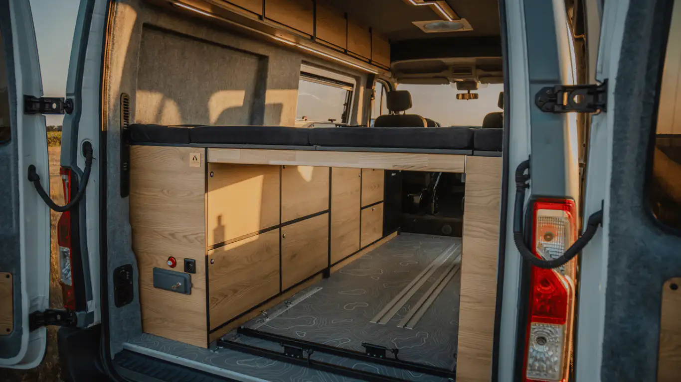 Ten kampervan to idealny wybór dla aktywnych osób, które chcą zabrać ze sobą sprzęt sportowy – rowery, narty czy deski surfingowe. Może nim podróżować i spać do 3 osób – na dużym tylnym łóżku oraz pojedynczym rozkładanym na przednich fotelach. Dzięki panelowi słonecznemu na dachu kamper jest niezależny energetycznie. Na pokładzie znajdziesz lodówkę, kuchenkę gazową i wysuwaną markizę, która zapewni cień na zewnątrz.